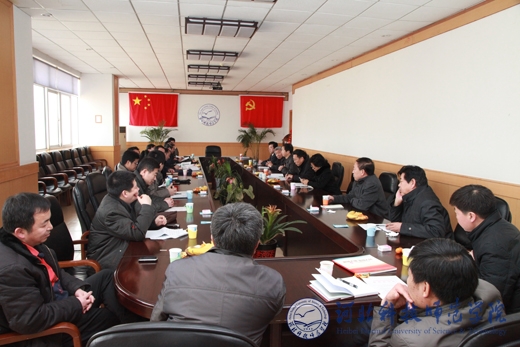 王同坤校长、 宋绍富副书记在会上分别对我校基层建设年驻村工作组提出了指导意见。李佩国同志在会上介绍了省委驻村工作会议精神。高书国同志宣读了我校基层建设年工作相关文件,按照省委要求,我校选派的带队驻村厅级干部是党委常委,党委办公室、校长办公室主任李佩国,驻村其他干部是朱天志、赵建平、杨宗泽、赵维新、常学东,共六人。我校驻村工作组将对口帮扶张家口市蔚县两个村。