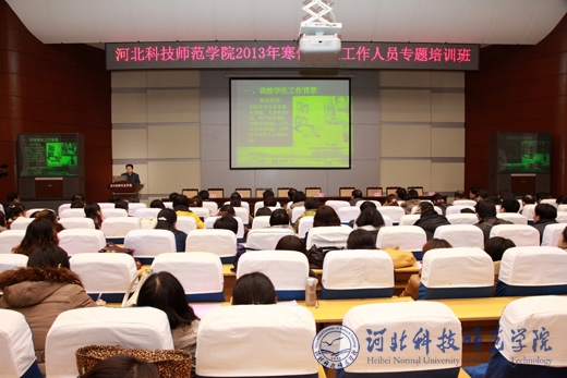 为进一步增强我校学生思想政治教育管理工作水平,凝聚共识,增强学生工作合力,2月28日,校党委学工部、学生处、团委、招生就业处在秦皇岛校区联合举办了以 “管理思想与实践艺术” 为主题的2013年寒假学生工作人员专题培训班,会期1天。校党委常委、副校长房海,副校长张福喜,组织部部长高书国,宣传部部长田毅,教务处处长武士勋,人事处处长徐嘉一,保卫处处长吴子国,工会主席毕丹霞,思想政治理论教学部主任常旭,党办、校办副主任蒋爱林出席开班典礼。各院(系)主管学生工作领导,学工办主任,团委书记、辅导员、班主任以及学生处、团委和招生就业处全体人员共210余人参加了此次培训。本次培训班由党委学工部部长、学生处处长冯瑞银主持。