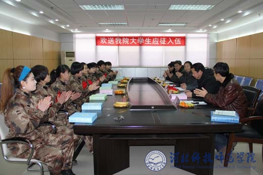今年冬季征兵我校共有18名女大学生应征入伍,12月27日下午,我校在秦皇岛校区召开应征入伍女大学生欢送会。学校党委书记辛彦怀,招生就业处处长张福喜,党委宣传部、统战部部长田毅,教务处处长武士勋参加了欢送会。会议由武装部部长吴子国主持。