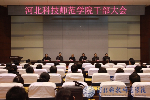2012年12月11日上午,我校召开干部大会,河北省委教育工委副书记郭树良、省委组织部干部五处处长李国民、省委教育工委组织干部处处长霍炳泉等同志代表河北省委宣布了我校校级领导干部调整任免决定。我校副处级以上干部和正高级职称人员参加了大会。