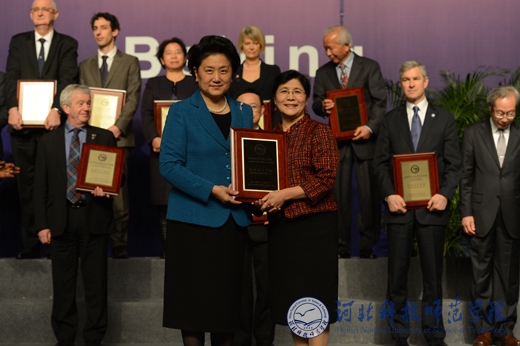 国务委员、孔子学院理事会主席刘延东为我校与特洛伊大学共建的孔子学院代表徐弘院长颁奖