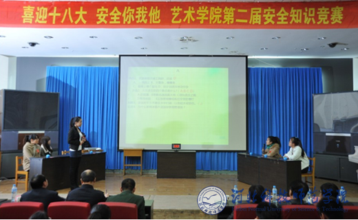 2012年11月8日下午,我校艺术学院在开发区校区学术报告厅举办了以“喜迎十八大,安全你我他”为主题的第二届安全知识竞赛。副校长孟令臣及保卫处、艺术学院相关领导观看了比赛。市公安消防支队特勤二中队队长王磊、市公安交警支队二大队办公室主任游其军、校保卫处副处长张明权担任此次竞赛的评委。经过激烈角逐,2011级美术学吕子嫣同学取得竞赛第一名。(编辑:孙艳敏 审稿:赵建平)