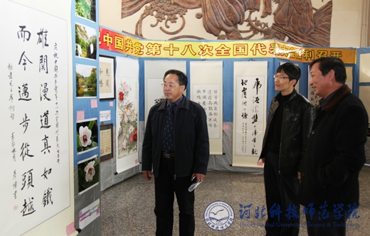 校党委常委、副校长宋绍富(左三)参观书画摄影作品展