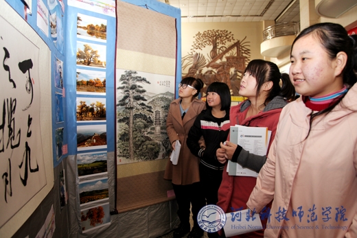 2012年11月12日,我校在秦皇岛校区举办庆祝党的十八大胜利召开师生书画摄影作品展。展览由校工会主办,共展出师生书画摄影作品100余幅。在各基层工会的认真组织下,广大师生员工积极响应,泼墨挥毫,展示才艺,抒发了对党和国家的热爱之情,表达了对党的十八大胜利召开欢欣鼓舞之情。此次活动也为全校具备书画、摄影特长的师生搭建了一个良好的才艺展示平台,为欢庆党的十八大胜利召开营造了浓厚的校园文化氛围。(编辑:朱洪亮 审稿:赵建平)