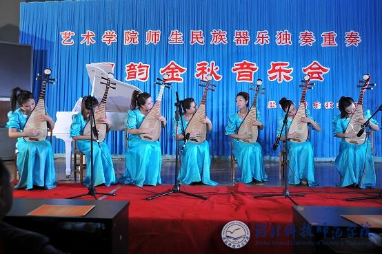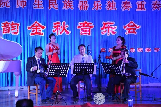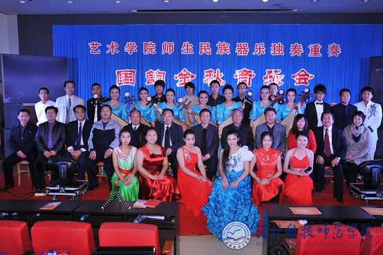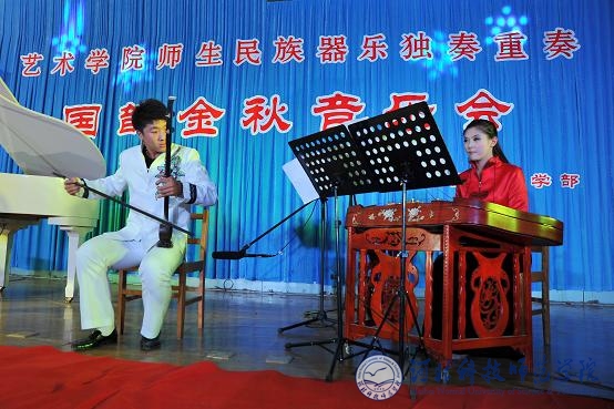 11月12日晚,在全国人民庆祝十八大胜利召开的日子里,艺术学院师生民族器乐独奏、重奏“囯韵金秋音乐会”在开发区校区学术报告厅举行。校党委副书记、校长辛彦怀,党委常委、副校长宋绍富,副校长孟令臣、郭国维,宣传部部长田毅、教务处处长武士勋和艺术学院领导及师生们一起观看了这场音乐会。 音乐会上,师生们同台献艺,用二胡、板胡、琵琶、扬琴、中阮、古筝、笛子、管子、笙、唢呐等乐器,以独奏、重奏、曲合奏的形式,演奏了不同风格的著名民族器乐曲目。师生们的精彩表演,赢得了现场阵阵掌声和喝彩。