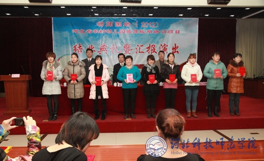 2012年11月16日上午,我校承办的第二期“幼师国培”(2012)短期培训班结业典礼在中国煤炭工人北戴河疗养院举行。副校长房海教授出席结业典礼并讲话。继续教育学院院长赵宝柱、教育学院院长崔万秋、继续教育学院和教育学院相关人员以及103名国培班学员参加了结业典礼。结业典礼由继续教育学院副院长刘超主持。结业典礼之后,培训班师生举行了首次汇报演出。(照片宣传部提供)(编辑:孙艳敏 审稿:田毅)