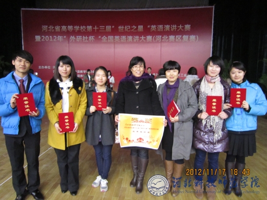 2012年11月16日至18日,河北省高等学校第十三届 “世纪之星”英语演讲大赛决赛在北华航天工业学院举行。本次大赛由河北省教育厅和河北省高等学校外语教学研究会联合举办。