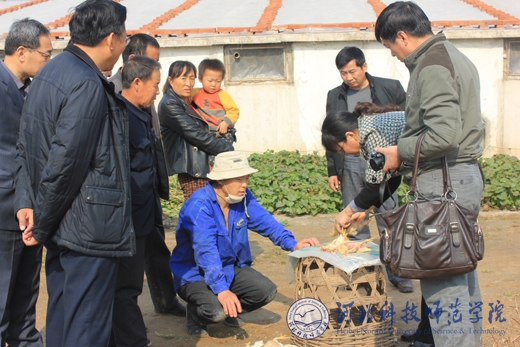 图为动物科技学院史秋梅、朱文进两位教授通过现场解剖病死鸡,查找病源