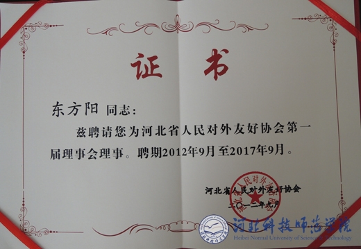 图为我校国际合作与交流处东方阳处长获聘证书