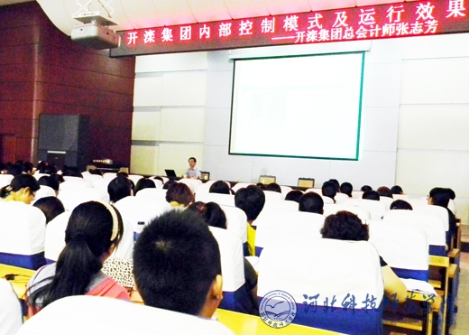 2012年8月28日上午,全国“五一”劳动奖章获得者、全国先进会计工作者、开滦集团公司总会计师张志芳应邀在我校秦皇岛校区学术报告厅为我校师生作了一场题为《开滦集团公司内部控制模式和运行效果》的学术报告。校党委常委、副校长宋绍富和财经学院党委书记张建宗、院长贾圣武、副院长杜茂宝出席了报告会。参加国家级骨干教师培训班的学员和我校会计、审计专业的师生听取了报告。