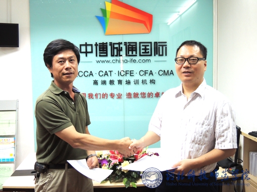2012年8月16日,我校国际交流中心与北京中博诚通国际技术培训有限责任公司签订了ACCA(Association of Chartered Certified Accountants)特许公认会计师精英特训班和 (Certified Management Accountant)美国注册管理会计师联合培养协议。我校国际交流中心主任东方阳博士与北京中博诚通国际技术培训有限责任公司主任毛金明出席协议签字仪式并签字。