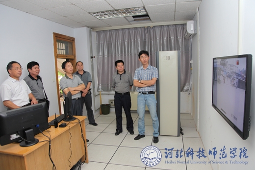 辛彦怀校长(左三)和孟令臣副校长(左一)检查迎新工作现场监控设施