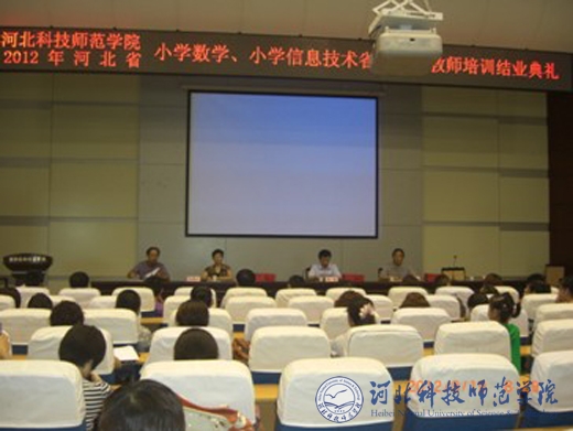 2012年8月19日,河北省小学数学、小学信息技术骨干教师培训结业典礼在我校举行。来自全省11个地市的192名小学数学和信息技术骨干教师参加了结业典礼。学校房海副校长、继续教育学院刘超副院长、教育学院白继海副院长和部分培训教师出席了典礼。