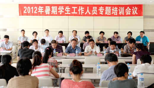 2012年8月24日,由党委学生工作部、学生处、团委主办的2012年暑期学生工作人员专题培训会议在秦皇岛校区召开。副校长孟令臣及相关部门负责同志出席了会议。学生处、团委全体人员,各院(系)学生工作主管领导、学工办主任、团委(总支)书记、专职辅导员等80余人参加了培训。培训会由党委学工部部长、学生处处长冯瑞银主持。
