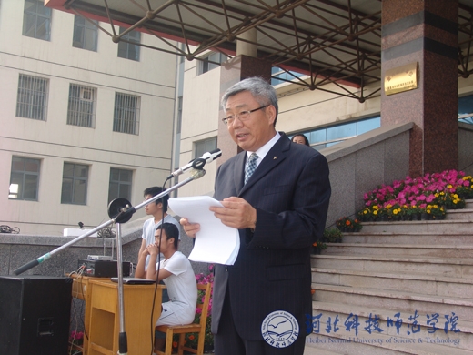 典礼在庄严的《国歌》声中开幕。石千峰、辛彦怀、宋绍富、杨洪青四位校党政领导分校区发表了热情洋溢的讲话。他们分别代表学校全体教职员工对圆满完成学业的5713名(秦皇岛校区1629名、欧美学院校区1293名、昌黎校区1620名、开发区校区1171名)毕业同学表示祝贺;对全体毕业生勤奋学习、刻苦钻研、团结进取、创新拼搏、昂扬向上的精神风貌表示赞赏;对同学们几年来给予学校各项工作的关心与支持以及做出的贡献表示感谢。