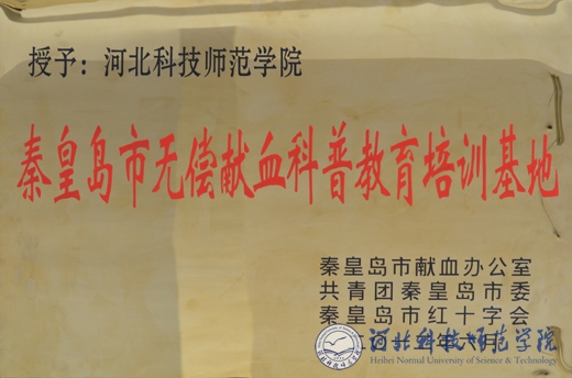 我校被授予“秦皇岛市无偿献血科普教育培训基地”标牌