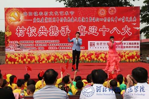 2012年6月20日,我校文法学院与海阳镇党委共同主办的“村校共携手,喜迎十八大”村校共建文艺演出在海阳镇四村村民中心举行。我校副校长孟令臣出席本次活动并为“精神文明村校共建单位”、“大学生社会实践基地”揭牌。我校党委宣传部、学工部、学生处、团委、文法学院与秦皇岛市农业局、海港区委组织部、文体局、海阳镇党委、镇政府等部门领导出席了本次活动。