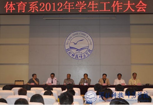 2012年5月18日下午,我校体育系在秦皇岛校区学术报告厅召开学生工作大会。副校长孟令臣、副校长郭国维、学生处处长冯瑞银和体育系领导班子出席了大会。体育系党总支委员、科级干部、教学部主任、实验室主任,辅导员、班主任及全体学生参加了大会。会议由体育系党总支书记马爱林主持。