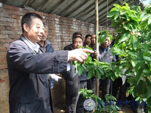 我校边卫东教授为桃林口村干部群众介绍设施樱栽培技术