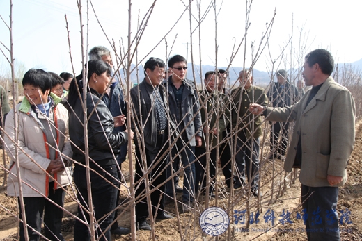 2012年4月11日,我校科研处根据我校派驻桃林口村工作组的要求,由科研处副处长闫立英教授带队,与驻桃林口工作组组长贠小波、果树专家边卫东教授等一起,组织卢龙县桃林口村干部和群众40余人到昌黎县和卢龙县等地参观学习。学校党委副书记王同坤教授在驻点帮扶的卢龙县邸柏各庄村接待了参观考察人员,并亲自介绍了发展设施生产的有关情况。卢龙县电视台等新闻媒体随行采访。