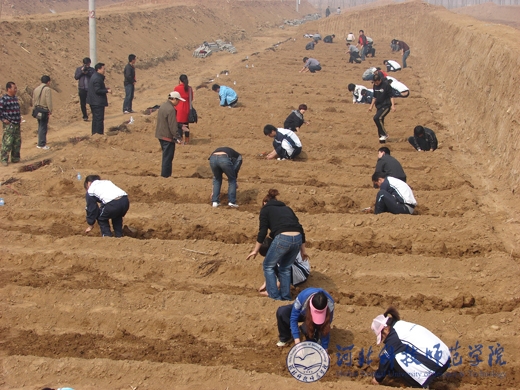 2012年4月13日上午,园艺科技学院副院长齐永顺教授带领60名师生赶到卢龙县邸柏各庄村设施葡萄苗木栽植现场,无偿帮助果农抢栽苗木,以解燃眉之急。