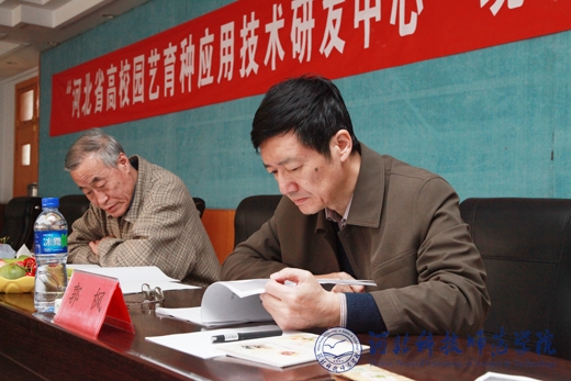 2012年4月24日,由河北省教育厅科技处处长董友、副处长刘治利,军械工程学院博士生导师陈致明教授,河北农业大学博士生导师张玉星教授,石家庄铁道大学郭枫教授组成的专家组对依托我校建设的“河北省高校园艺作物育种应用技术研发中心”进行可行性论证。学校党委副书记王同坤,科研处处长杨越冬,园艺科技学院院长项殿芳、副院长齐永顺等陪同考察。