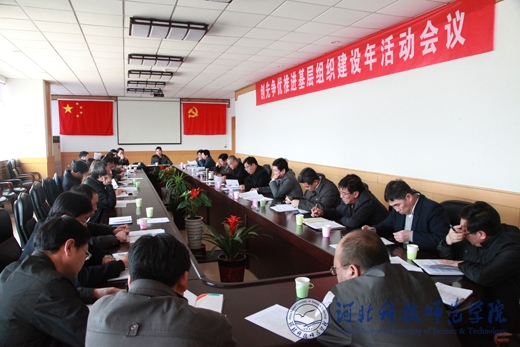 2012年4月6日,我校创先争优推进基层组织建设年活动会议在秦皇岛校区召开。党委书记石千峰、党委常委刘泽义出席会议,党委组织部部长高书国,党委办公室、校长办公室主任李佩国,纪委副书记赵宗宝,党委宣传部、统战部部长田毅,党委学工部部长、学生处处长冯瑞银及各基层党委(党总支)书记(或主持工作的副书记)参加了会议。会议由党委组织部部长高书国主持。