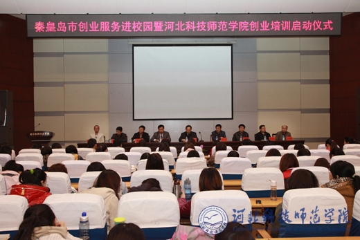 2012年4月9日,秦皇岛市创业服务进校园暨我校创业培训启动仪式在秦皇岛校区举行。我校副校长孟令臣、秦皇岛市人力资源和社会保障局副局长张仕民出席启动仪式。我校即将毕业的大学生代表400余人参加了启动仪式。仪式由我校招生就业处副处长白雪松主持。