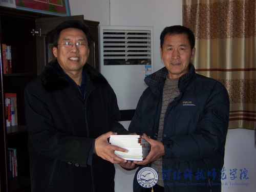 工作组组长、党委副书记王同坤将前期赠送的15种30本科技书籍交到村支书邸巨胜手中