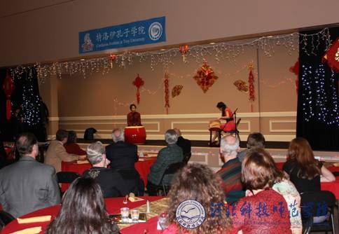 特洛伊大学校长霍金斯及副校长波特博士首先发表了热情洋溢的讲话,感谢孔子学院教职员为晚会演出付出的辛苦劳动,以及孔子学院为两校、中美两国的良好关系所起的桥梁作用。孔子学院中方院长陈晓枫教授发言,感谢国际学生办公室的支持和中国学生学者联谊会做出的大量准备工作,祝愿大家共度健康、幸福、繁荣的龙年。