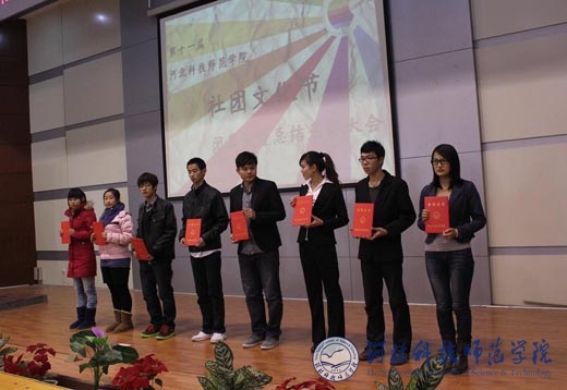会上,我校学生社团联合会主席李义申同学对我校2011年学生社团工作做了总结汇报。学工部副部长、团委书记于海印同志宣读了《关于表彰2011年“优秀学生社团”、“优秀学生社团负责人”、“优秀社员”的决定》。与会领导为获得表彰的社团和个人颁发了证书和奖状。优秀社团代表在大会上进行了经验交流。