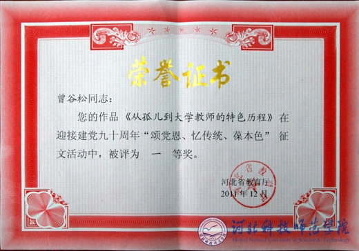 近日,省教育厅老干部工作会议及离退休干部统计工作会议在石家庄召开。我校离退休人员管理办公室主任于洪奎等参加了会议。会上,于洪奎主任作了题为《促建设 保本色、顾全局、有作为》的创先争优与老干部工作“四结合”的典型发言。会议对2010年度离退休干部统计年报评审结果进行了通报,我校被评为优秀报表单位。会议还通报了省教育厅庆祝建党90周年离退休干部主题征文评奖结果,我校离退办选送的退休教师曾谷松的《从孤儿到大学教师的特色历程》获得一等奖,退休教师张国祥的《当我写入党申请书的时候》获得二等奖,退休教师王凤翔的《注重抓好文化民生 不断推进社会建设》获得三等奖。 (编辑:孙艳敏 审稿:赵建平)