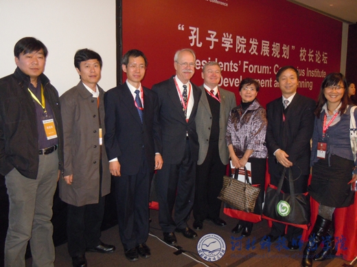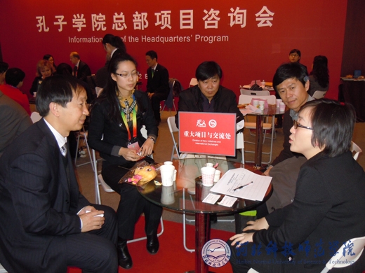 自2006年以来孔子学院大会已连续举办六届,其宗旨是为全球孔子学院交流经验、加强合作、密切联系提供平台,本届大会以“孔子学院的未来十年”为主题,来自105个国家和地区的2000余位大学校长和孔子学院代表参加了孔子学院大会,全国各省市教育厅领导、我国驻外使领馆教育组代表以及全国260余所承办孔子学院的高校代表参加了孔子学院工作座谈会。我校辛彦怀校长、国际合作与交流处东方阳处长、孙学文副处长参加了两个会议的全部活动,并在孔子学院总部项目咨询会上走访了各职能处室,会见有关领导和工作人员,为我校孔子学院的建设和发展寻求契机和支持。美国特洛伊大学副校长英格拉姆在校长论坛专题会议上作了主旨发言。辛彦怀校长在“全国孔子学院工作座谈会”分组讨论中,就依托学科优势建立孔子学院,确立考评准入和评估退出机制,合理布局现有孔子学院等建议与国家汉办王永利副主任和北方高校的代表交换了意见。