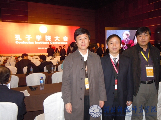 图为辛彦怀校长(中)参加“第六届孔子学院大会”