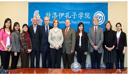 2011年10月6日,美国特洛伊大学专门为我校赴美任教的周红玉、邢杰、裴艳丽、孙国欣四位老师举行了欢迎仪式。特洛伊大学第一副校长英格拉姆博士,助理副校长波特博士、微兹拉克博士以及孔子学院美方院长徐弘博士、中方院长陈晓枫副教授等出席欢迎仪式。