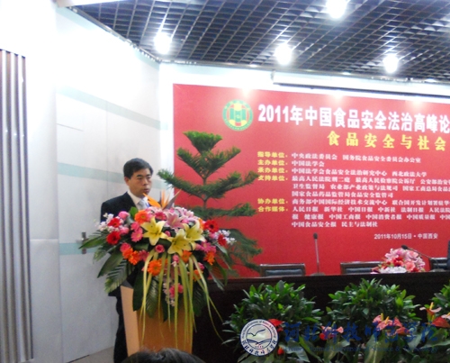 2011年10月15日,由中国法学会主办,以中央政法委员会、国务院食品安全委员会办公室作为指导单位,最高人民法院、最高人民检察院等8家单位支持的“2011年中国食品安全法治高峰论坛”陕西分论坛在西北政法大学举行。我校文法学院副院长赵福江副教授应邀参加了本次论坛并作了题为《行业协会与食品安全社会监督——监督强制力的视角》的报告。来自全国的相关行政部门、高校、研究机构、新闻媒体等200余名专家学者参加此次论坛并进行了广泛交流。(编辑:孙艳敏 审稿:赵建平)
