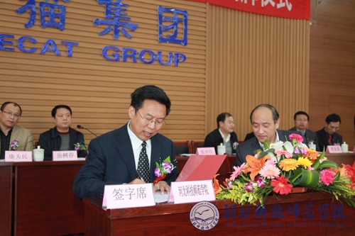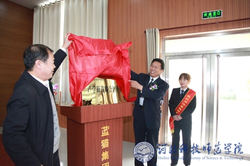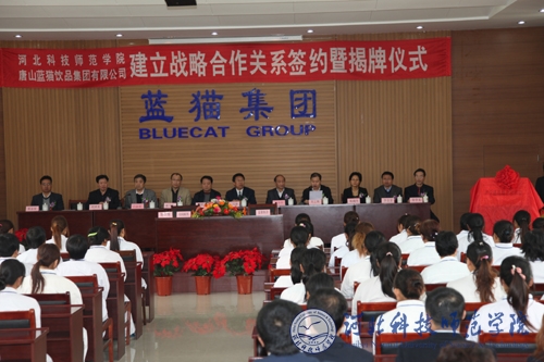 2011年10月26日,我校与唐山蓝猫食品集团公司战略合作协议签字暨揭牌仪式在遵化市举行。我校党委副书记王同坤教授、科研处处长杨越冬教授、宣传部副部长赵建平、食品科技学院副院长康维民教授、常学东教授、蔡金星教授等出席了仪式。出席仪式的还有唐山市科技局周志辉处长、遵化市岳树存副市长、遵化市科技局白前程局长、李金富副局长、蓝猫食品集团公司董事长张井印等。王同坤副书记代表学校签署合作协议。我校常学东教授代表课题组与公司达成了“野生酸枣现代干燥技术研究与应用”、“野生酸枣低温蒸汽浸提技术”和“野生酸枣饮料工艺及产品开发”具体项目协议。