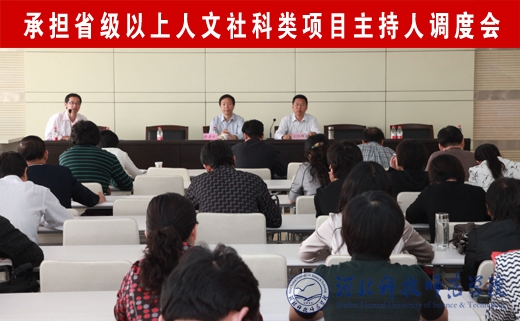 2011年9月29日上午,学校在图书馆九楼学术报告厅召开承担省级以上人文社科类项目主持人调度会,校长辛彦怀出席会议并讲话,王同坤副书记主持会议。