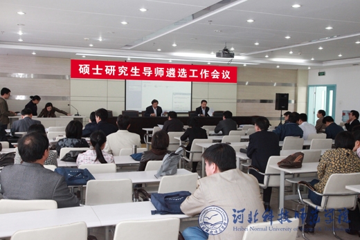 2011年10月14日,我校第四批硕士研究生导师遴选会议在秦皇岛校区召开。校学位评定委员会主席辛彦怀校长、副主席王同坤副书记、房海副校长等18位学位评定委员会委员以及全体研究生部工作人员参加了本次会议。会议由王同坤副书记主持,研究生部张立彬主任介绍了导师遴选的程序和办法。