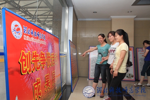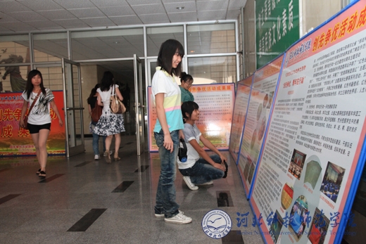成果展分前言、各基层党组织创先争优活动成果和结束语三个部分,通过文字和图片的形式充分展示我校基层党组织创先争优活动的阶段性成果以及在我校创先争优活动中涌现出来的先进人物和典型活动。本次成果展已于6月28日至7月6日在我校开发区校区展出,本周在秦皇岛校区展出,将于下周到昌黎校区巡展。