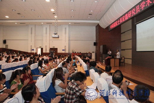 2011年7月11日, 我校在秦皇岛校区举办中国科学院院士吴宏鑫研究员学术报告会。中国科学院院士、北京控制工程研究所科技委副主任、博士生导师吴宏鑫研究员应邀作了题为《航天活动的现状和控制问题》的学术报告。数学与信息科技学院、机电工程学院等400余名师生聆听了报告。报告会由学校科研处主办,数学与信息科技学院承办。数学与信息科技学院院长王海明教授主持了报告会。