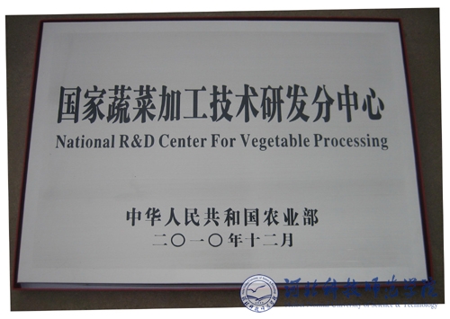 图为我校和企业共建的“国家蔬菜加工技术研发分中心”标牌