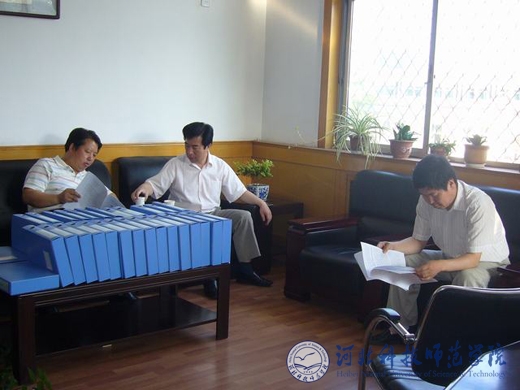 2011年6月8日下午,房海副校长和学校党委办公室、校长办公室主任李佩国,教务处长武士勋到继续教育学院检查指导“迎接教育部重点建设师资培养培训基地评估”进展情况。继续教育学院院长赵宝柱汇报了迎评工作的准备情况,并就如何凸显我校基地建设特色、自评报告的主体架构等问题回答了领导的询问。各位专家在系统查阅评估资料后,就自评报告撰写、汇报课件制作和评估专家接待等问题提出了建设性意见,建议组织校内专家按照评估程序进行一次预评估,若发现问题及时整改。