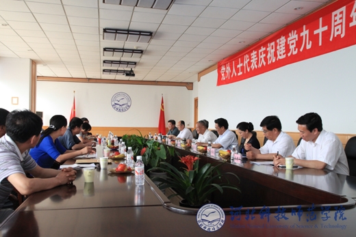 2011年6月14日下午,我校党外人士代表庆祝建党90周年座谈会在秦皇岛校区召开。校党委书记石千峰,党委副书记王同坤,党委常委、副校长宋绍富,纪委书记李榕,副校长郭国维,党委常委刘泽义出席会议。党委学工部部长田毅,党委宣传部、统战部副部长赵建平及我校各民主党派成员代表、党外高级知识分子代表参加了座谈。会议由王同坤副书记主持。