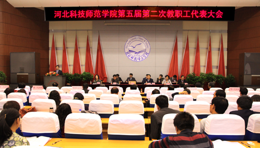 2011年5月21日,我校第五届第二次教职工代表大会在秦皇岛校区隆重召开。校党政领导石千峰、辛彦怀、王同坤、宋绍富、李榕、孟令臣、房海、郭国维、刘泽义、杨洪青,校长助理王子茂及全校231名教代会代表、6名列席代表参加了会议。