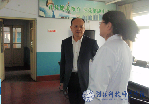 2011年5月11日下午,副校长郭国维到秦皇岛校区校医院调研指导工作。郭国维副校长实地考察了校医院办公环境、科室设置分布,认真听取了校医院的工作汇报。