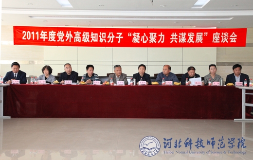 2011年5月13日上午,我校2011年度党外高级知识分子“凝心聚力、共谋发展”座谈会在秦皇岛校区召开。校党政领导石千峰、辛彦怀、王同坤、宋绍富、刘泽义、杨洪青和党委组织部、统战部、党委办公室负责同志出席座谈会。民进秦皇岛市委驻会副主委刘芳,民盟秦皇岛市委驻会副主委张海涛,民建秦皇岛市委副调研员傅东友,民革秦皇岛市委委员、第一支部主委、我校体育系教授吕圣君,九三学社秦皇岛市委驻会副主委石向礼、农工民主党秦皇岛市委驻会副主委兰波等受邀参加了会议,我校各民主党派基层组织负责人、成员代表以及其他党外高级知识分子代表共50余人参加了座谈会。校党委副书记王同坤同志主持了会议。