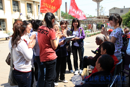 2011年5月14日上午,我校数信学院“付华志愿者小分队”到秦皇岛老来福老年公寓开展“关爱老人,奉献爱心”主题活动。数信学院党委书记马国光、党委宣传部副部长赵建平出席活动,秦皇岛电视台记者对活动进行了现场采访。