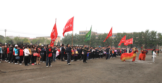 开幕式上先后进行了运动员入场式表演、国旗班分列式表演、百人武术搏击表演、千人军体拳表演等。开幕式结束后,竞赛项目正式开始,期间,辛彦怀校长亲切看望了参加门球比赛的离退休运动员。闭幕式上,与会领导分别为获奖运动员和先进集体颁发了荣誉证书和荣誉奖牌。
