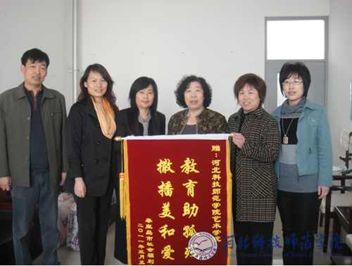 2011年4月14日,秦皇岛市福利院院长武燕一行为我校艺术学院送来锦旗,并为长期坚持为福利院提供艺术指导的学生颁发了荣誉证书。艺术学院相关党政领导热情接待了武燕院长一行。